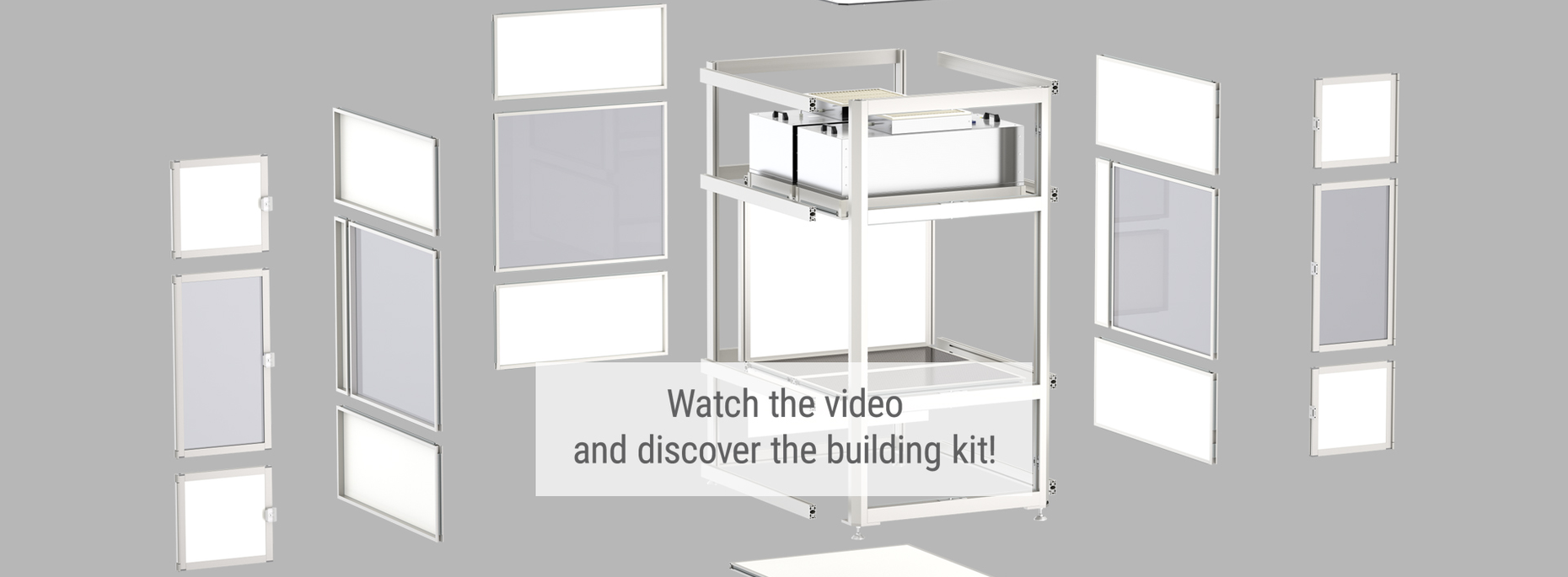 • This process enclosure for cleanroom applications is based on Line XMS profiles with integrated cable conduits and easy-to-clean unbroken surfaces. The Filter Fan Unit generates an extremely clean laminar displacement flow that passes through the working area and is recirculated to the FFU via the rear wall.